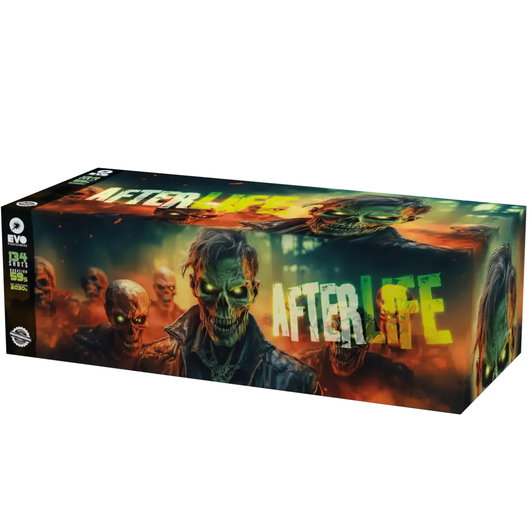 Step beyond the veil with Afterlife, a hauntingly beautiful firework that merges elegance with raw power. This 134 shot repeater delivers around 2030gof explosive artistry, with vivid colours and crackling crescendos culminating in an unforgettable finale.